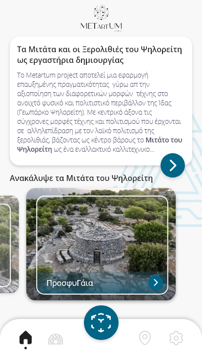 The above have been documented and are being disseminated through the digital application (MetartTum app) centered around the exploration of different forms of art in the open natural and cultural environment of Mount Ida (UNESCO Geopark of Psiloritis).