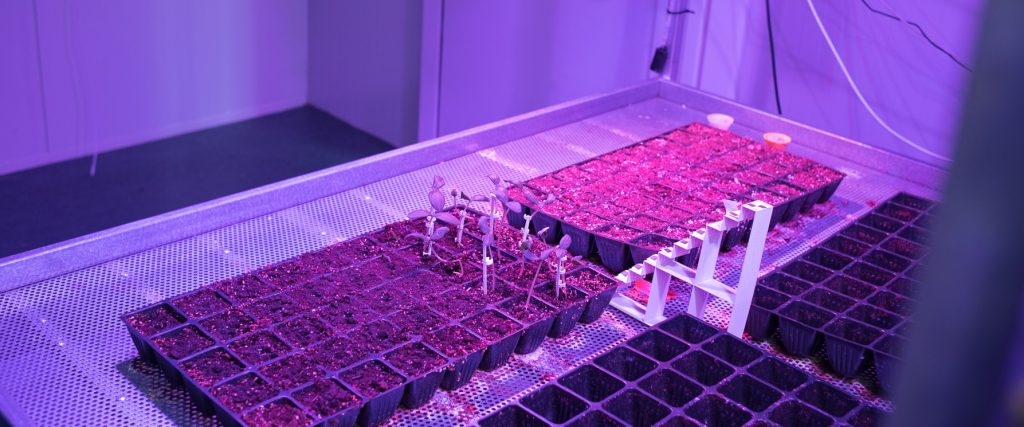 •  Intelligent Greenhouse: The Intelligent Greenhouse makes use of state-of-the-art technologies, so as to cover the entire spectrum of production and streamline the synergy and interaction among people and smart environments in the domain of Agri-food. The AmI Seedbed is able to plant vegetable seeds, precisely water each individual sprouted plant and measure its height (i.e., growth) from the very beginning until their transplantation in the greenhouse. The Intelligent Greenhouse is a small-scale experimental prototype that integrates various technologies to act as an intelligent cultivation space.